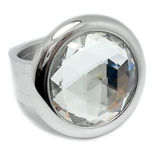 Anillo grueso con piedra facetada blanca de acero quirúrgico Alt. 24mm