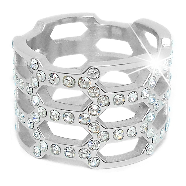 - Anillo panal con cubics blancos de acero quirúrgico -OFERTA-