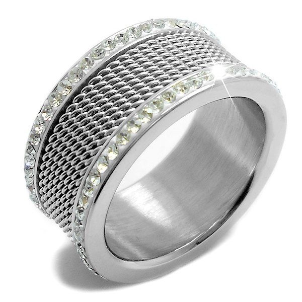 - Anillo tramado con cubics blancos de acero quirúrgico -OFERTA-