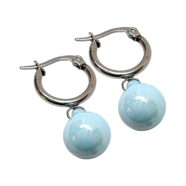 - Aros argolla 15mm con dije Bolita Celeste de acero quirúrgico -OFERTA-