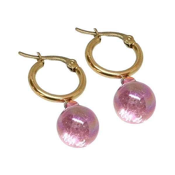 - Aros argolla 15mm con dije Bolita Rosa Tornasol de acero dorado -OFERTA-