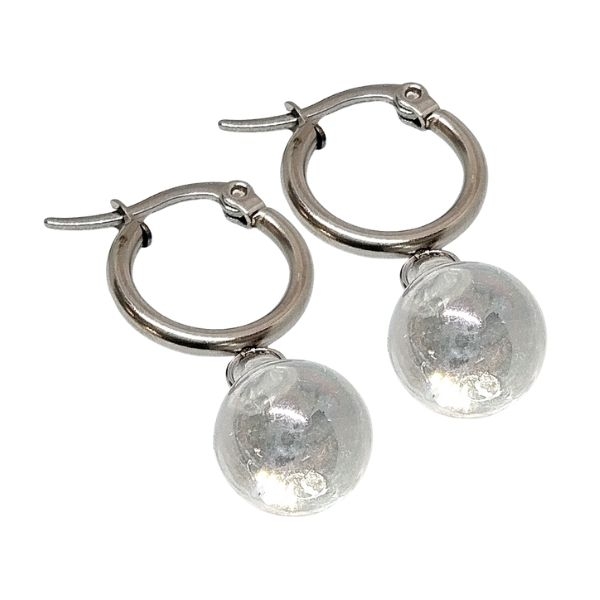 - Aros argolla 15mm con dije Bolita transparente de acero quirúrgico -OFERTA-