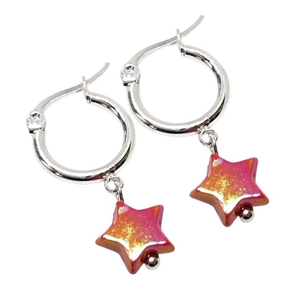 Aros argolla 15mm con dije Estrella Roja de acero blanco