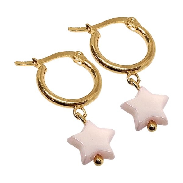 Aros argolla 15mm con dije estrella Rosa de acero dorado