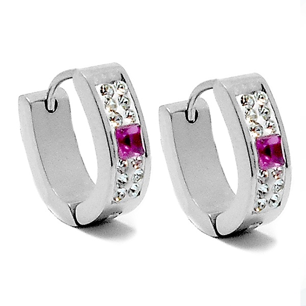 Aros cubanos ovalados con cubics blancos y rosado de acero quirúrgico