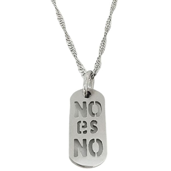 CONJUNTO Cadena Singapur con Dije "NO ES NO" Alt: 32mm incl. drop de acero quirúrgico
