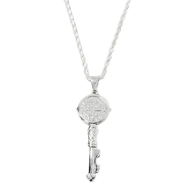 - Conjunto Cadena Turbillón 3mm 45cm y Dije Llave San Benito Alt: 58mm incl. drop de acero blanco -OFERTA-