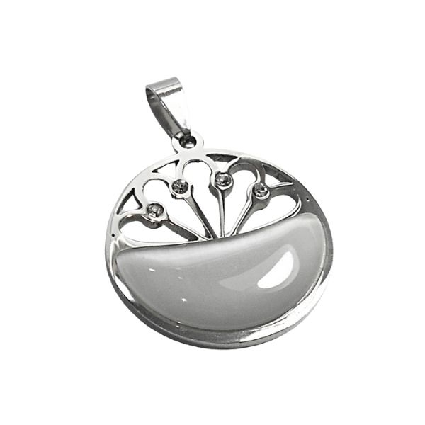 Dije círculo calado con cubics y piedra gris de acero quirúrgico Alt: 41mm incl. argolla