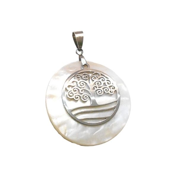 Dije de Nácar con aplique Árbol calado movible de acero quirúrgico Alt: 54mm incl. argolla
