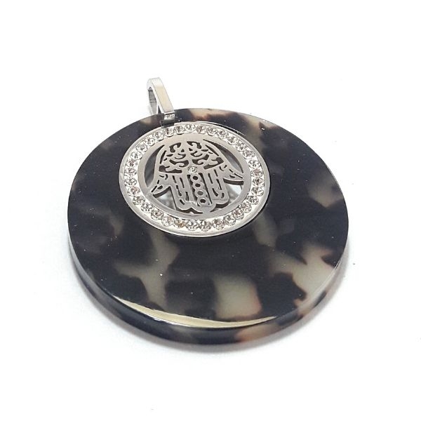 - dije MANO MARMOLADO CON CUBIC de acero quirurgico Alt: 50mm incl. argolla -OFERTA-