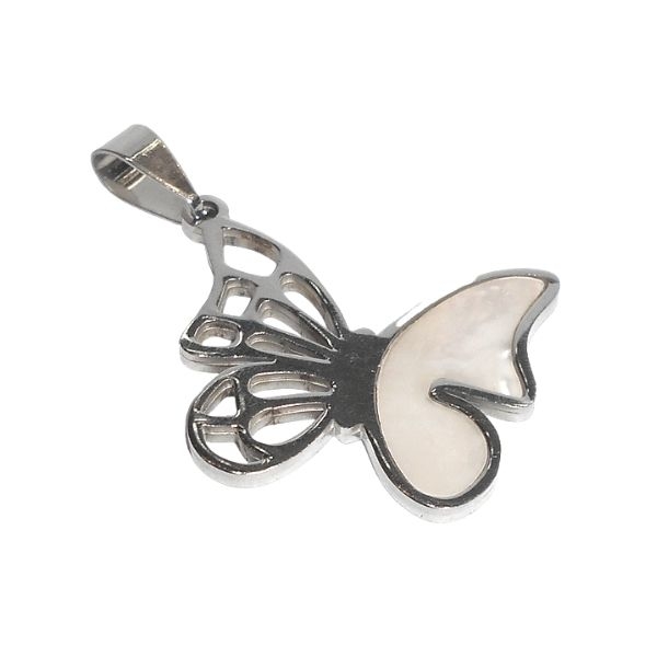 Dije Mariposa calada con nácar de acero quirúrgico Alt: 43mm incl. argolla