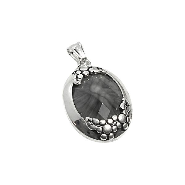 Dije óvalo tramado con piedra fumé de acero blanco Alt: 38mm incl. argolla