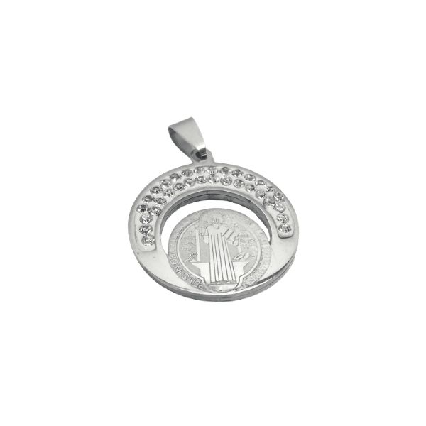 Dije San Benito calado con cubics de acero quirúrgico Alt: 35mm incl. argolla
