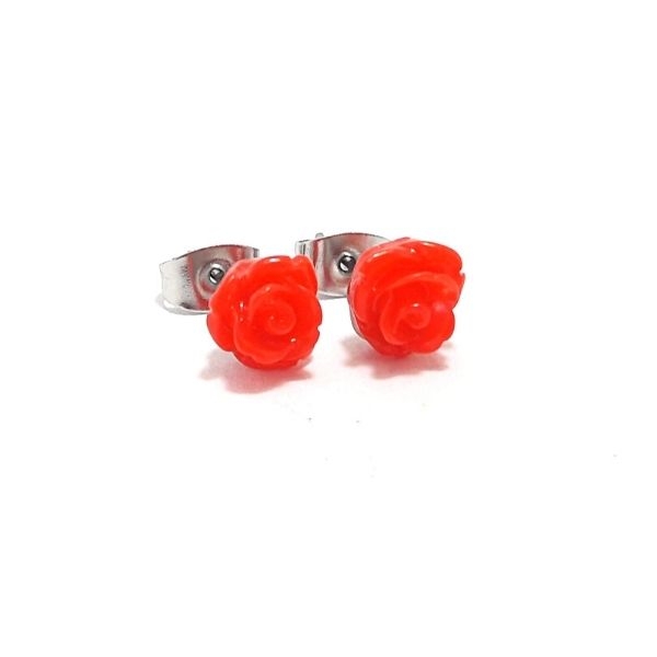 AROS DE ACERO QUIRURGICO FLOR ROJA