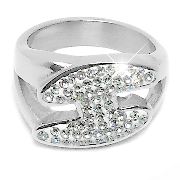 - Anillo tramado con cubics blancos de acero quirúrgico -OFERTA-