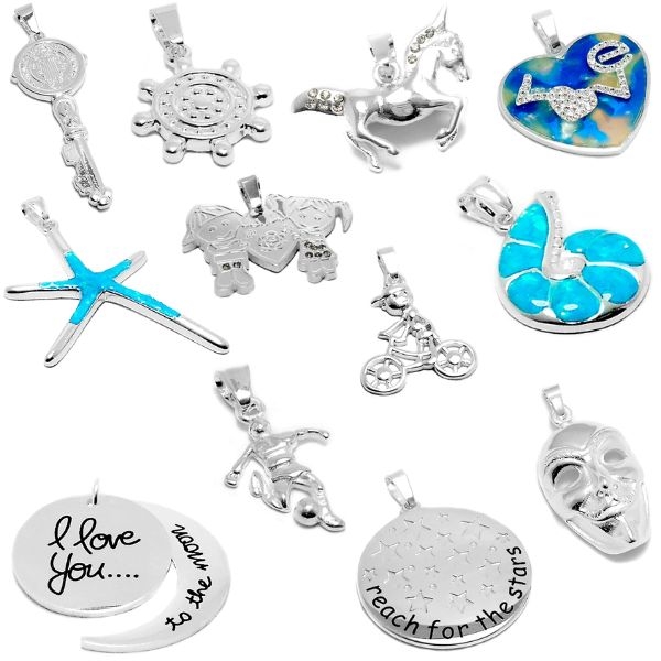 PACK x 12 Dijes Surtidos de Acero Blanco D7461 - D7471 - D7516 - D7522 - D7531 - D7537 - D7537 - D7541 - D7543 - D7549 - D7551 - D7561 - D7569