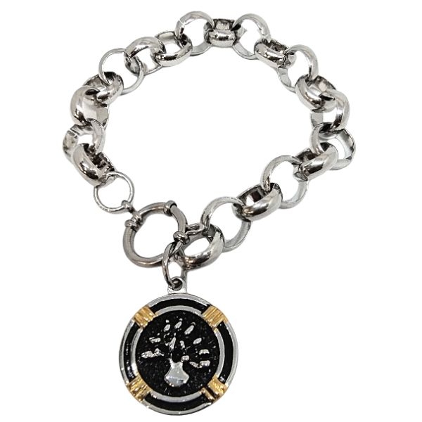 - Pulsera rolo 12mm x 21cm con cierre marinero y Dije Árbol de la Vida con esmalte y dorado Alt: 26mm de acero quirúrgico -OFERTA-