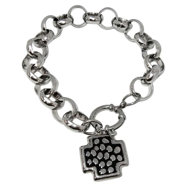 Pulsera rolo 12mm x 21cm con cierre marinero y Dije cruz del equilibrio esmaltado Alt: 22mm de acero quirúrgico