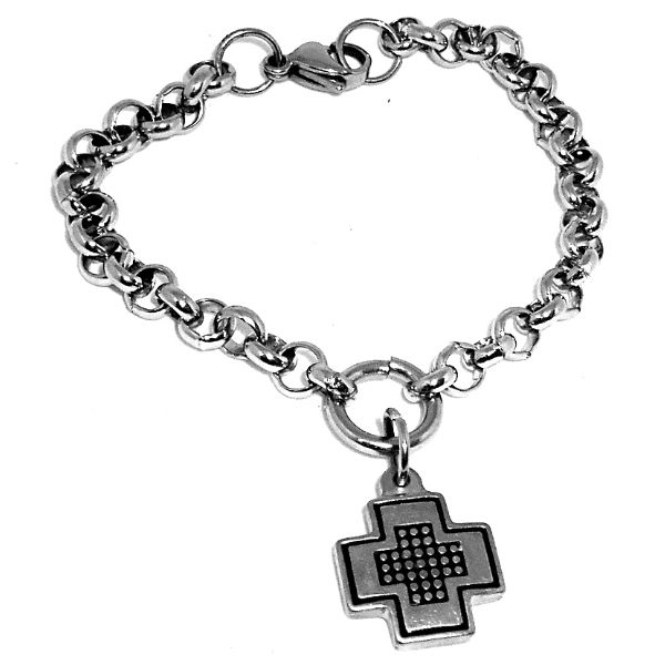 Pulsera Rolo 5mm con dije cruz del equilibrio esmaltada de acero quirúrgico