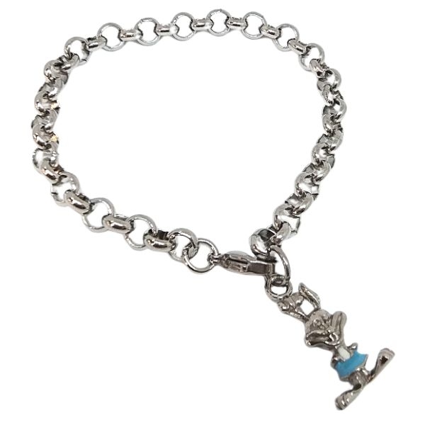 - Pulsera Rolo 6mm 18.5cm con dije Conejita esmaltado de Acero Quirúrgico -OFERTA-