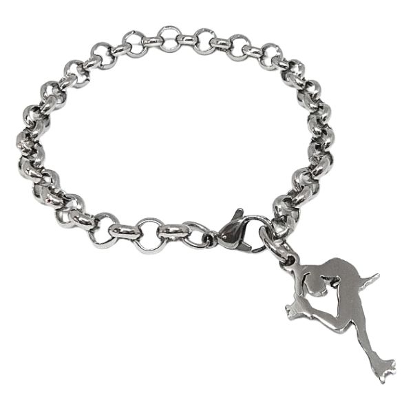 Pulsera Rolo 6mm 18.5cm con dije Patinadora de Acero Quirúrgico
