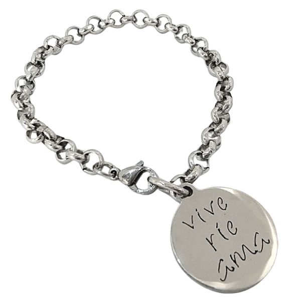 Pulsera Rolo 6mm 18.5cm con dije "Vive Ríe Ama" de Acero Quirúrgico